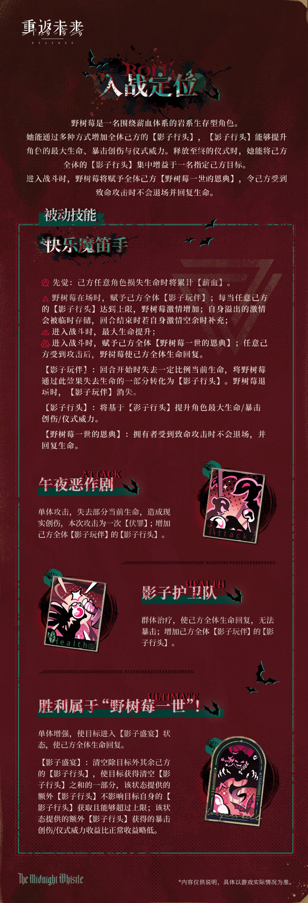 所有关于血食怪的特征都在野树莓身上得到体现:苍白得近乎透明的皮肤,谈笑时若隐若现的尖牙,还有血红的双眼。那双眼深处燃烧着某种不属于人类的东西——饥饿、疯狂,又或是某种更为难解的哀伤。野树莓从不避讳血食怪的身份,她不介意在众目睽睽之下舔舐指尖的鲜红。她脸上满意的笑容让人们忘了疑惑:为何阳光只会让这女孩流泪,而非感到灼痛。