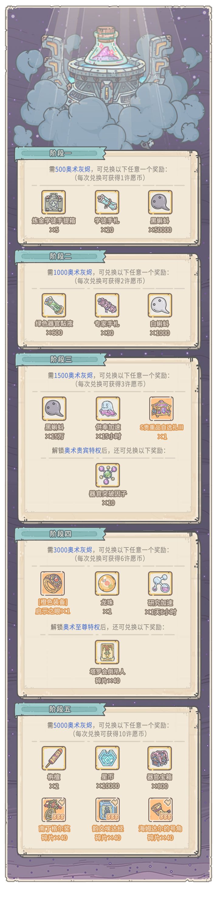 - 奥术贵宾特权:灰烬大作战1500档,新增兑换奖励器官突破因子×10