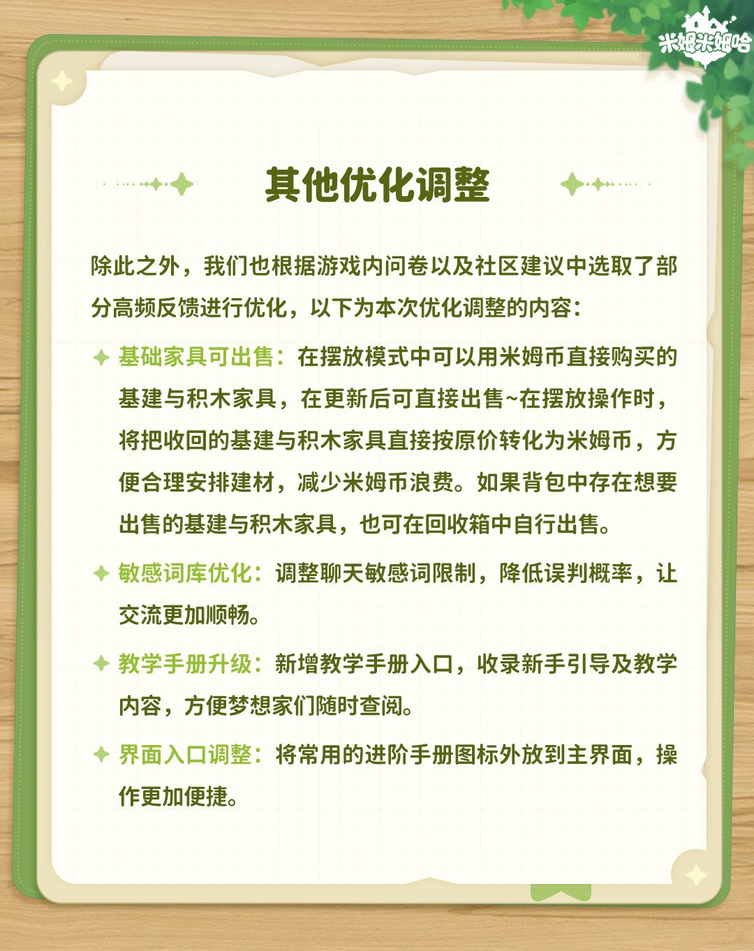 戳图查看米姆详细新增内容和优化调整~