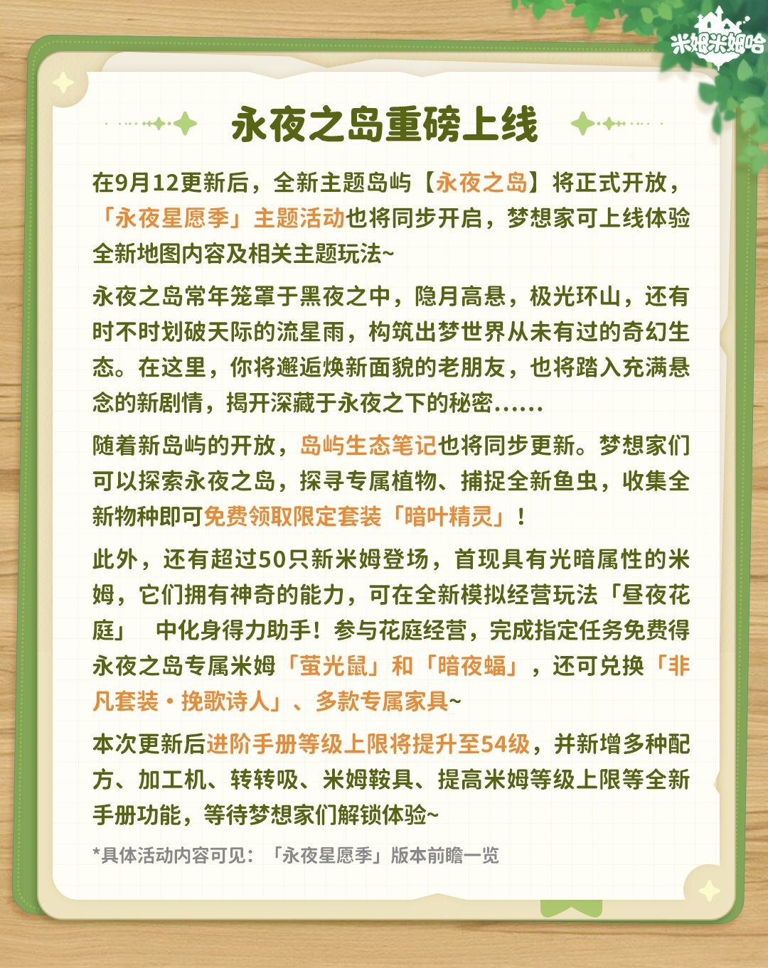 1.永夜之岛及「永夜星愿季」将于9月12日更新上线
