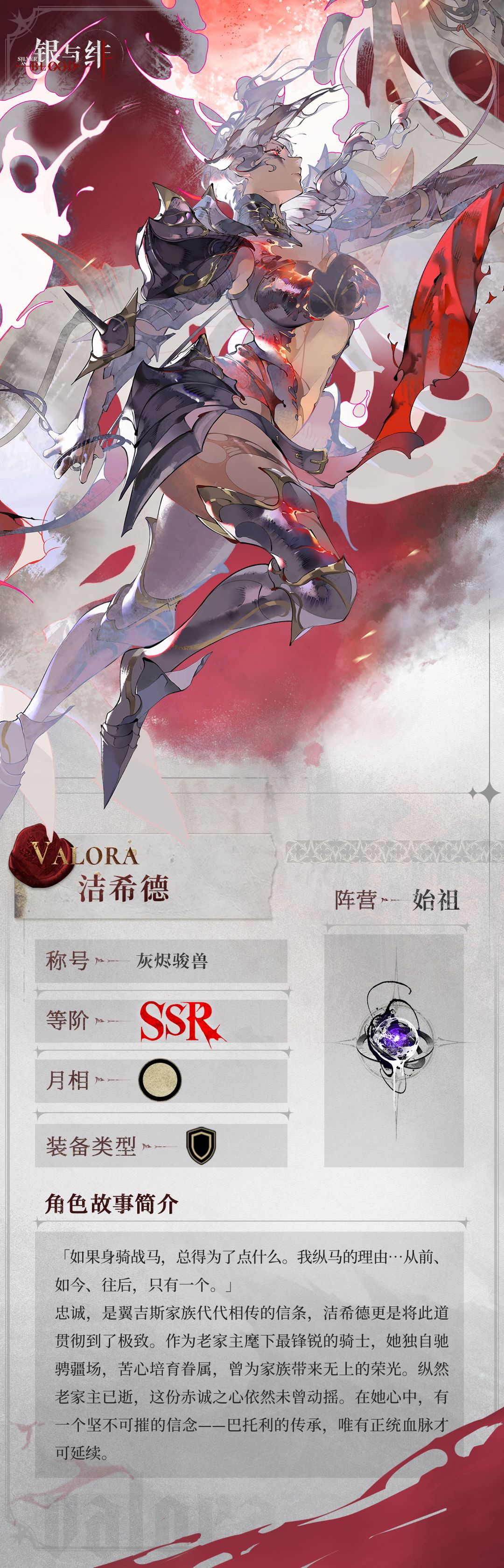 忠诚,是翼吉斯家族代代相传的信条,洁希德更是将此道贯彻到了极致。作为老家主麾下最锋锐的骑士,她独自驰骋疆场,苦心培育眷属,曾为家族带来无上的荣光。纵然老家主已逝,这份赤诚之心依然未曾动摇。在她心中,有一个坚不可摧的信念——巴托利的传承,唯有正统血脉才可延续。