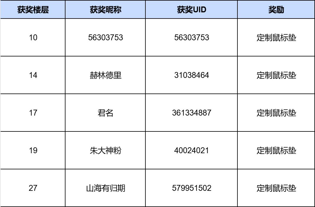 感谢大家的积极参与!恭喜以下玩家获得奖励。