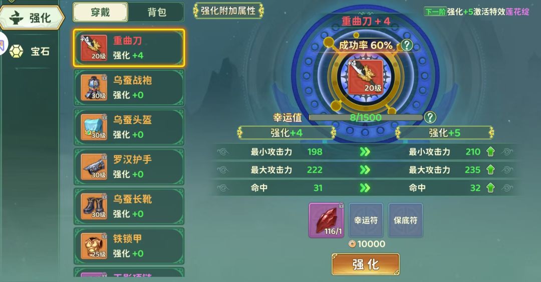 把自己的重曲刀强化到4级,看了一眼属性,感觉强化加的属性并不多啊