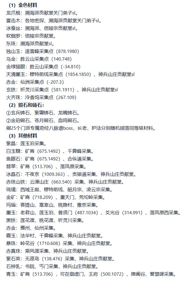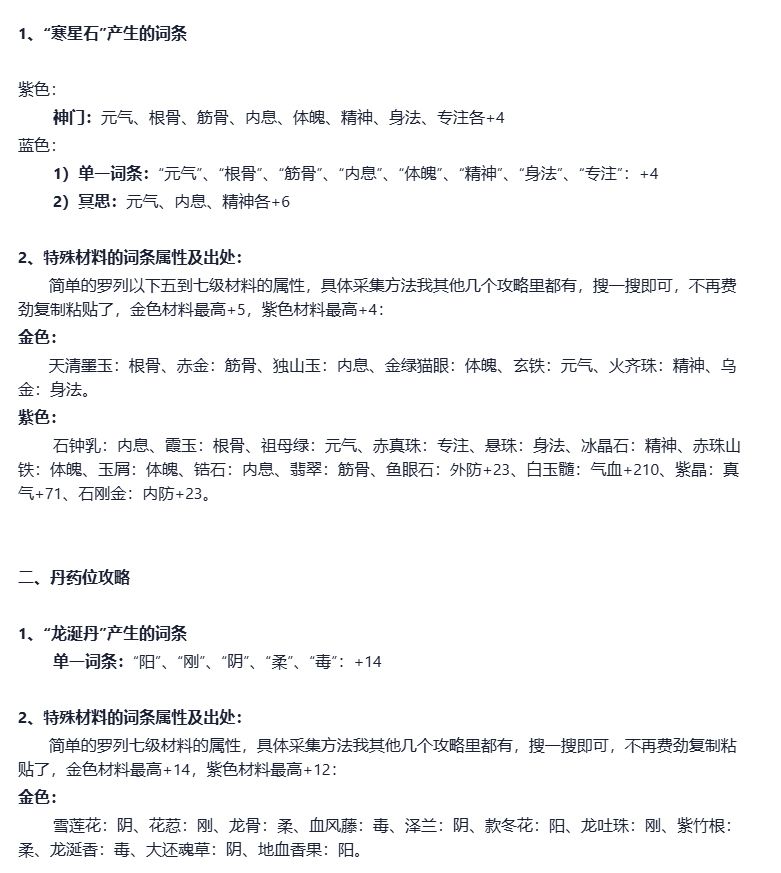 图7:武学冲灵时各个材料提升的对应属性------图源@丰尘武神