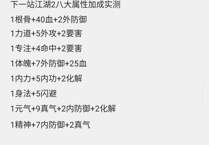 图3:八大属性没一点加成的具体方向和数值-----图源@雨下了