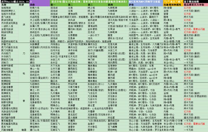 图1、图2:各个武器流派单套路玩法和主心法需洗练的属性方向-----图源@舞幻凤飞