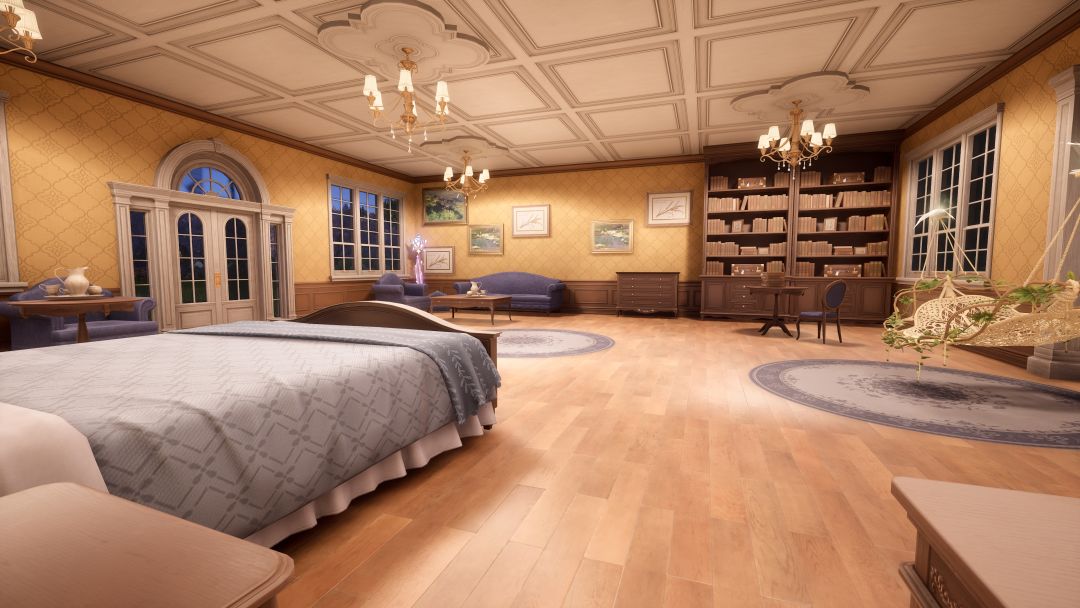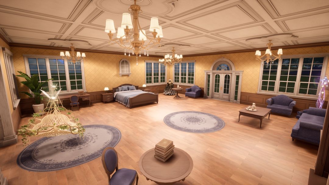 参考闪耀暖暖里房间布局,在家园里给暖暖搭了平价(贫穷)版大单间,所有材料都是回收初始房屋来的,没有一点后期制作,所以只能模仿基本布局:比如门口大窗户、🖼️墙对面放床,角落是沙发和书柜,缺点是空间比闪暖的小,层高不够,很多道具都没有(比如电视、壁炉、公主床)不过总算是给暖暖一个家啦