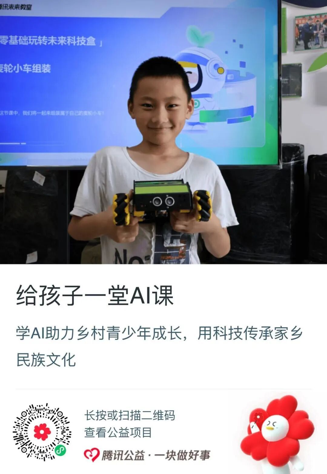 当城市的孩子用AI创作图画、对话机器人时,这些“未来技能”在乡村课堂里仍只是课本上的名词。我们深知,AI思维将是下一代理解世界的基础语言,不该被山海阻隔。