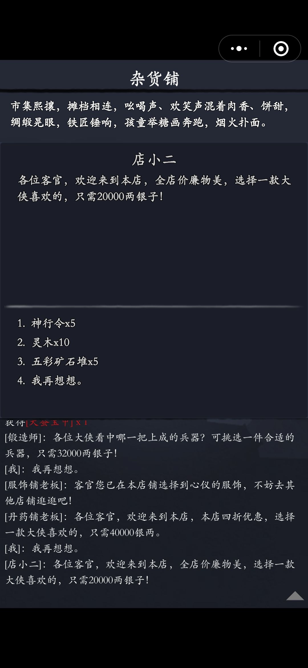你的江湖 店铺货物选择
