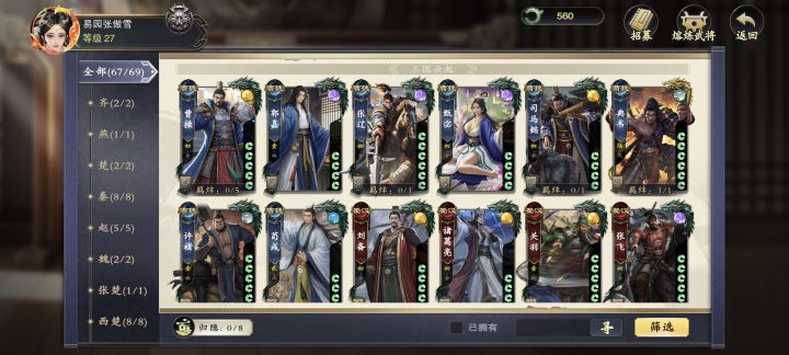67个武将已获得