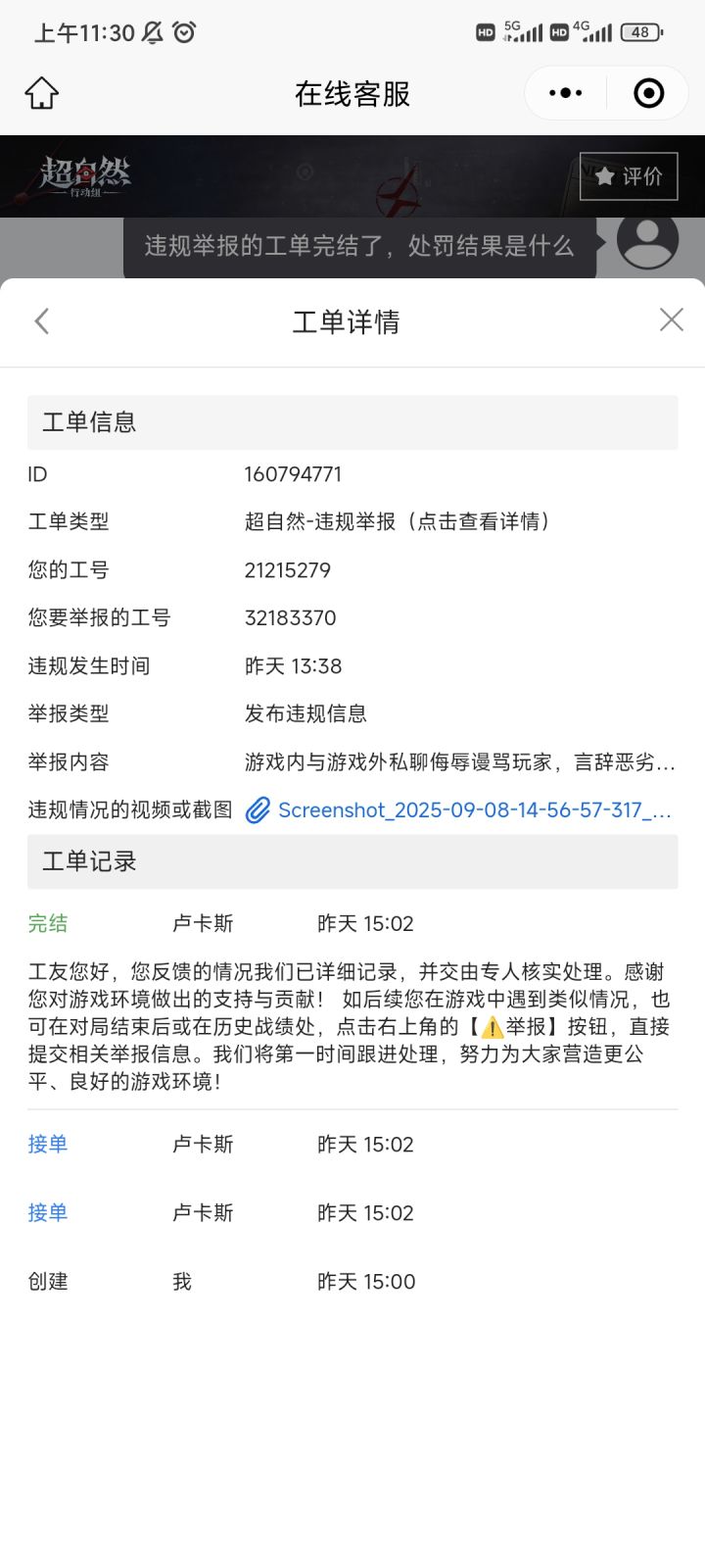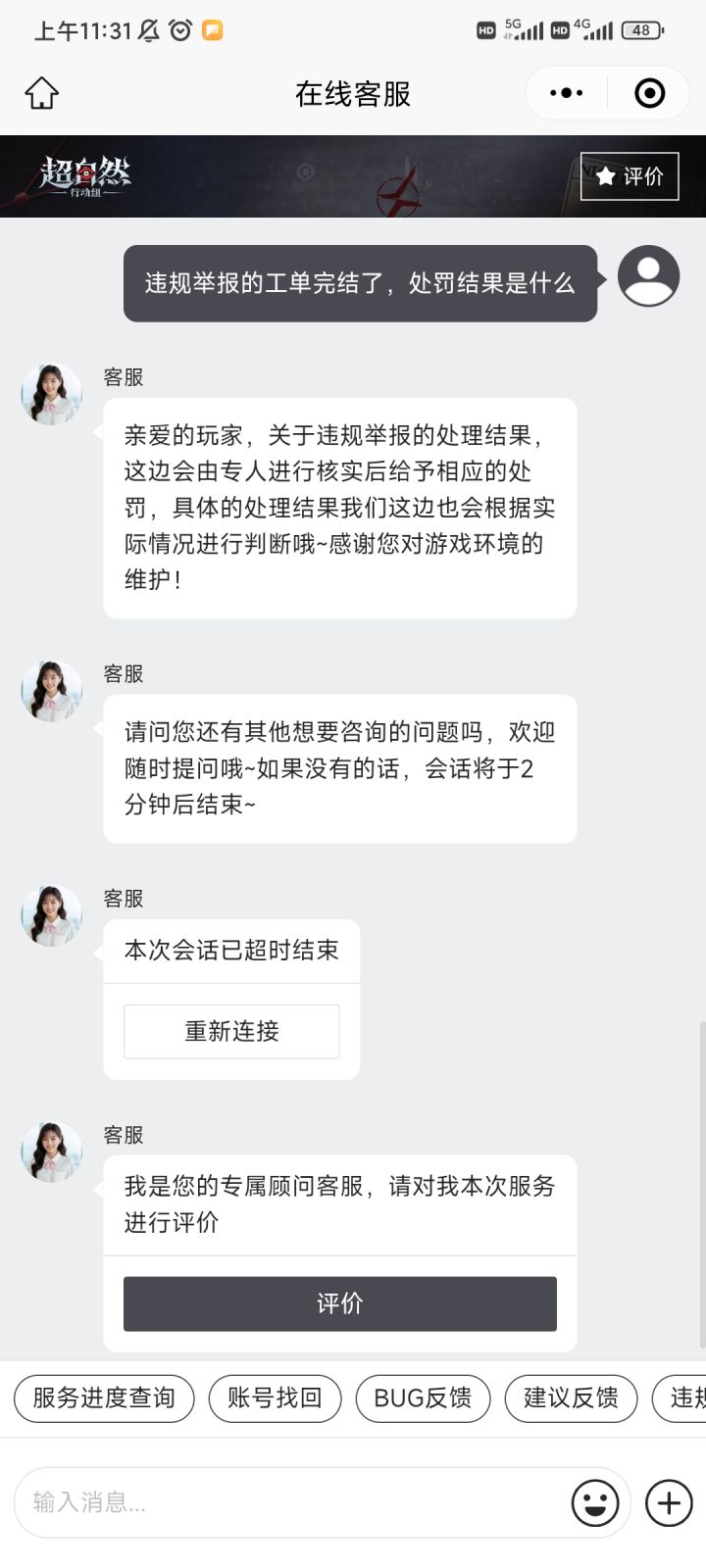 如图,下午三点发出的违规举报工单,三点零二分接的工单,不到一分钟完结工单。没有处理结果,询问处理结果也是公式化的敷衍。我请问一分钟不到,客服能看什么就处理完了?处理结果呢?