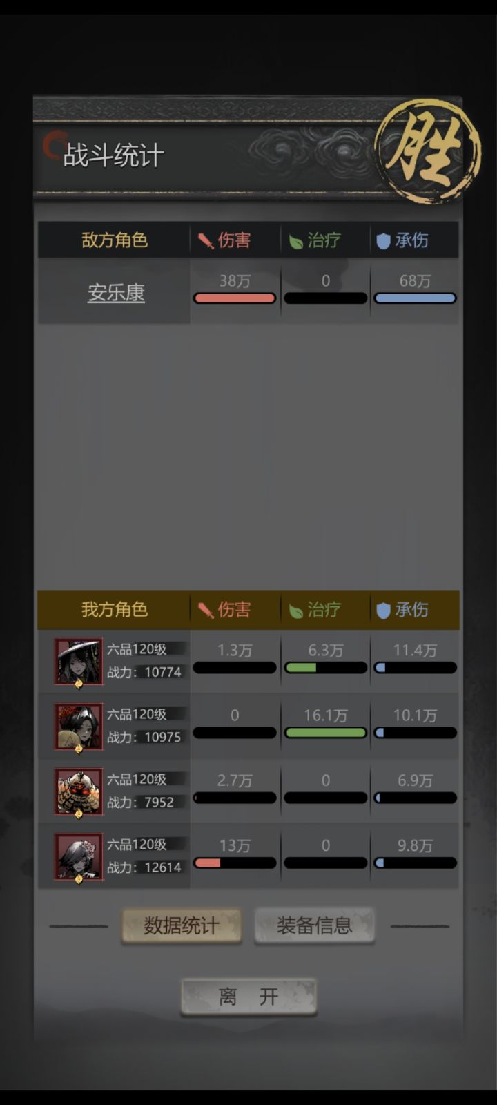 这关不能用操偶,操偶无效,血的教训,低配也不用想着破盾,因为神器伤害是直接打血条的,这关主要靠神器打大部分伤害,boss异常抗性是负的,很好上减内减外buff。开局手动 蛊师先发嘲讽,避免血量低的被单伤秒,然后奶血量最低的单位加抗,我这边是渗血被一下群攻直接一丝血皮,然后就是保持不减员,谁要死奶谁,直到神器加盾;济世开百分百自动奶,铜墙开嘲讽加抗,霸王卸甲减抗,渗血开一二技能。这关靠刷新神器我的阵容1.40秒就打完了,时间充足。