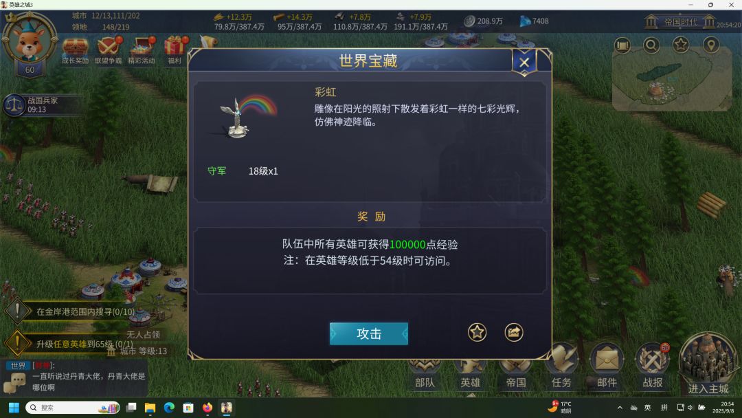 秘境是英3新增的玩法,也是游戏策划响应slg游戏降肝降氪趋势的一次尝试。比起改版前,需要满地图寻找彩虹,秘境中高级彩虹比比皆是。以内测当前游戏上限60级为例,秘境提供最高到54级的彩虹。