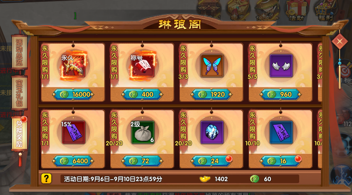 - 充值获取:活动期间充值元宝,最多可额外得 10000 琳琅宝玉;