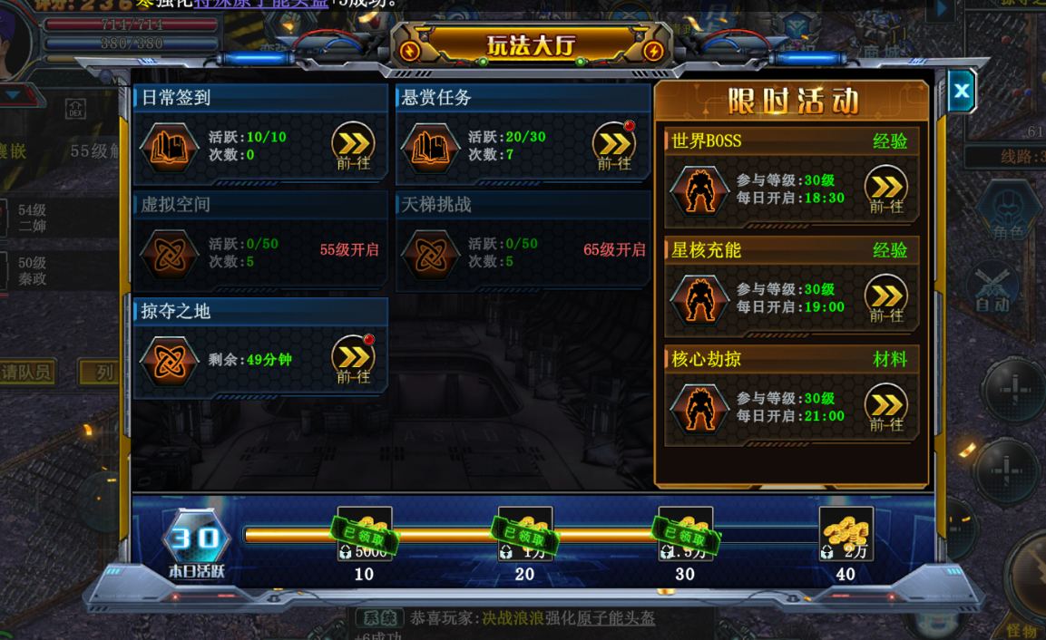 👥 军团集结:从网吧五连坐到万人同屏当年在黑网吧组队刷怪的兄弟,这次能在 军团要塞战 中再续前缘。每周固定开启的要塞争夺战,需要 20 名 30 级以上精英成员 同心协力:20:00 破门竞速 考验团队输出,20:10 能量球争夺 则是战术博弈,最终胜利者将通过 双轨拍卖行(世界拍卖 + 军团拍卖) 获得丰厚分红 —— 世界拍卖全参与者平分,军团拍卖专属归属者,真正实现 “兄弟同心,其利断金”。日常活动更是为上班族量身定制:18:30 世界 BOSS(掉落锁定符与合成石),19:00 星河充能(抢占光圈赚经验),21:00 核心劫掠(赢首饰宝石),每晚黄金三小时让你下班回家也能畅快激战。而 每周三 20 点黑市拍卖(稀有机甲碎片、变异宠物蛋),重现当年蹲点抢装备的刺激。