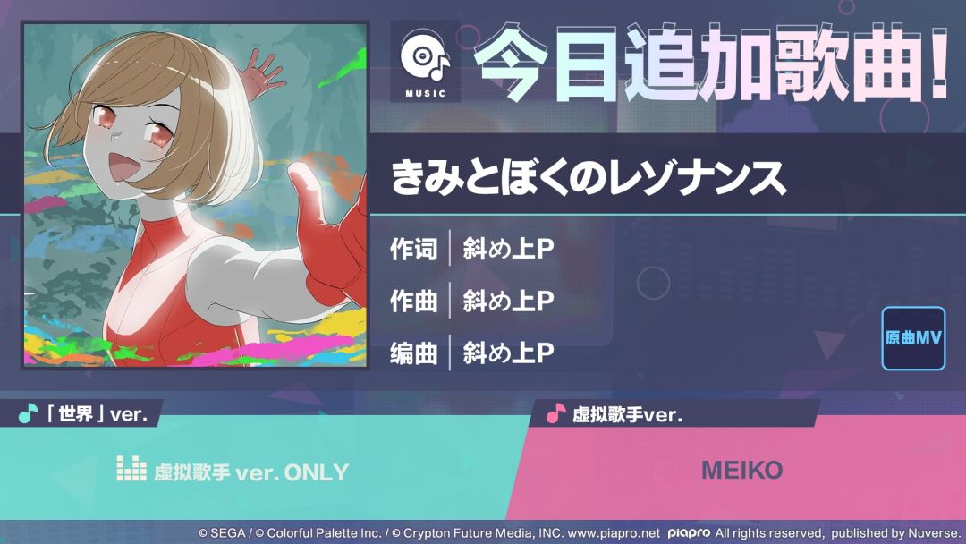 9/10 15:00起,将追加歌曲《きみとぼくのレゾナンス(你我之间的共鸣)》!