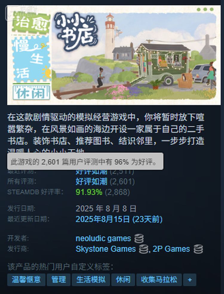 今年Steam好评率最高的模拟经营游戏,是开书店