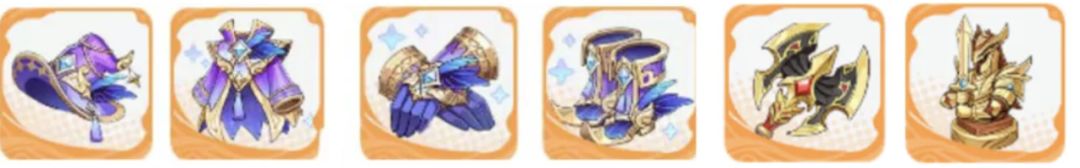 雅典娜、庞培、奥伯隆妮、戈仑(石头人)、特拉希尔(树人)、阿努比斯(狗头)。四件套:护臂、头冠、胸甲、靴子。