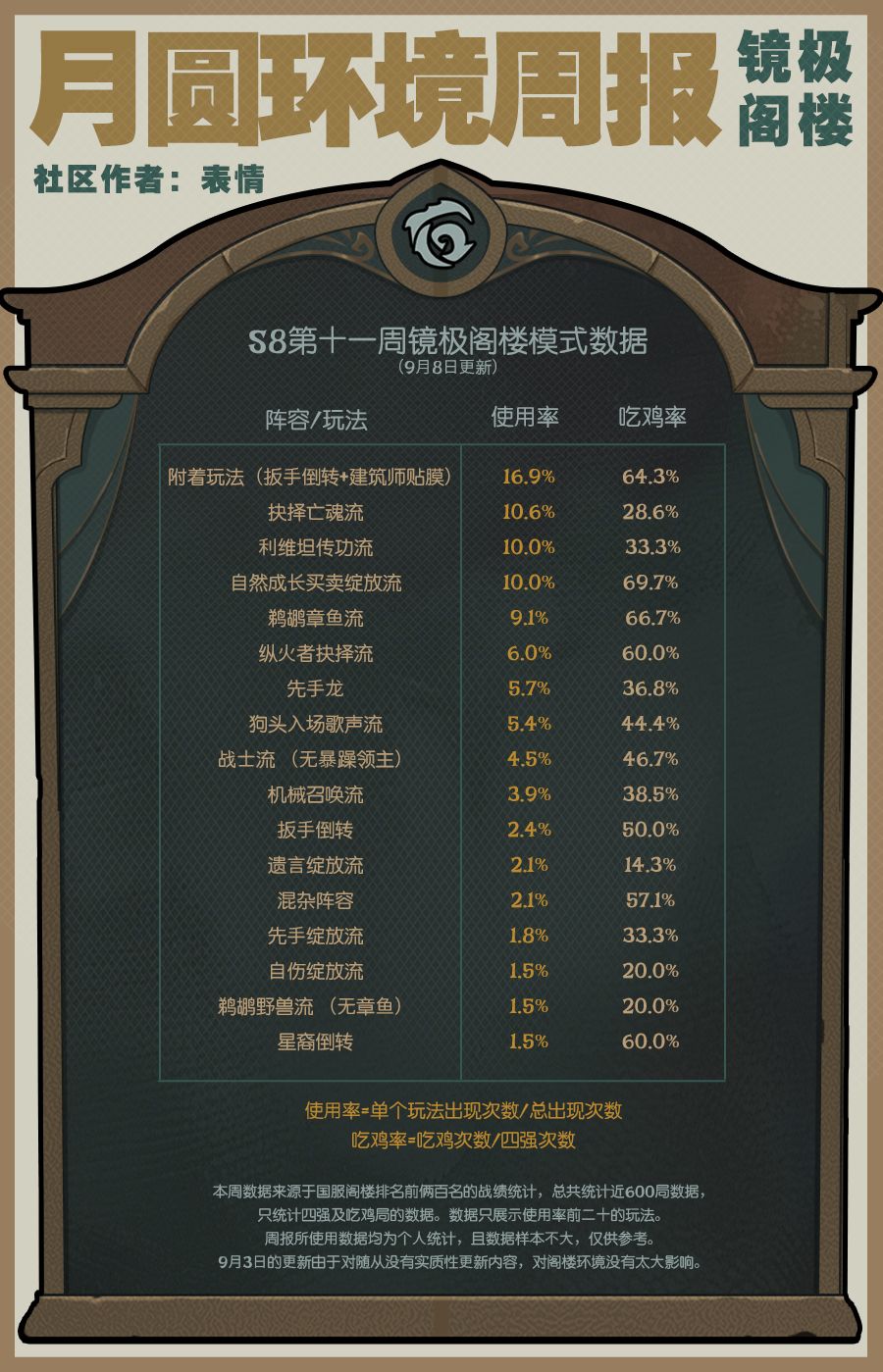 速报!S8赛季第十一周的「标准模式」及「镜极阁楼」阵容数据来袭!