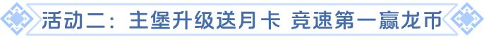 - 联盟共享,盟主分配:30000龙币+礼物:高级基金*10+礼物:领主特权(7天)*30+礼物:黄金月卡(7天)*30