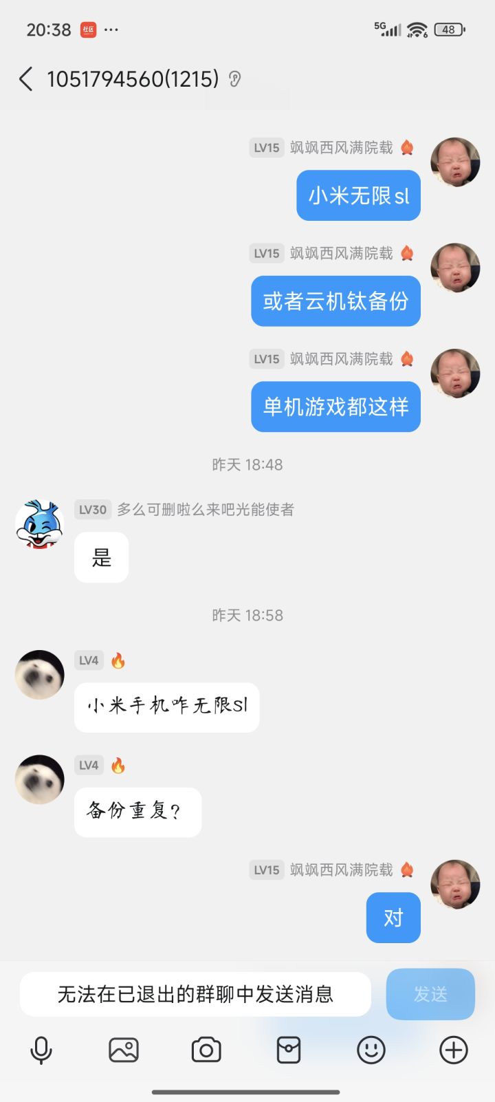 本来就一个单机游戏,在群里说了下无限备份sl直接把我飞了,作者是不是太没格局了?作者是小时候没玩过电脑单机吗?sl本来就是单机游戏的基操。而且我也是氪了免广的,麻烦把我号我也封了吧,把免广的29元退我谢谢!真是把我气到了!
