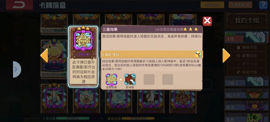 金身放在12卡,因为怕紫魂少的情况下可能会点不出来(这里就要注意了,进去刷新因子的时候尽量避开减少金币和紫魂获取的负面因子,仙门免疫更是必须避开,其他效果看自己),琉璃没点出来真不好打破碎晶(图三最终boss)。