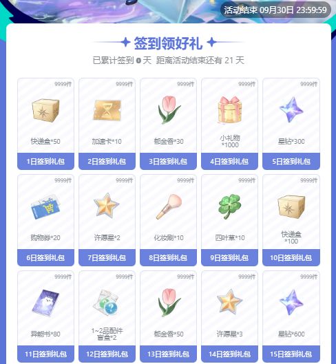 整整十五天,只需签到打卡就可免费领取每日好礼喵~