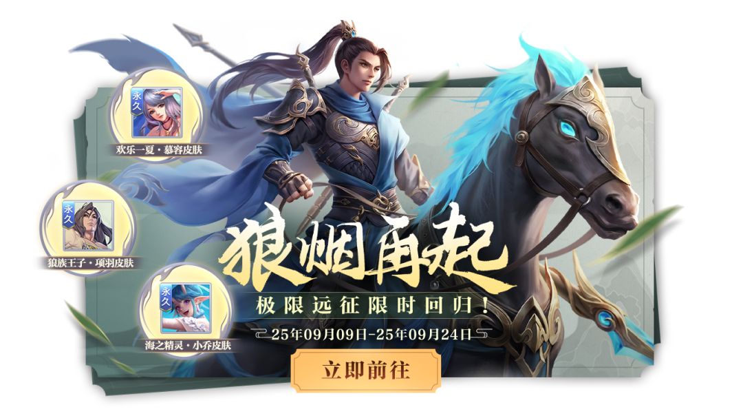 活动期间内远征商城稀有皮肤限时回归:慕容·欢乐一夏、鲁班·机械天才、小乔·海之精灵、项羽·狼族王子(活动期间内可兑换1次)