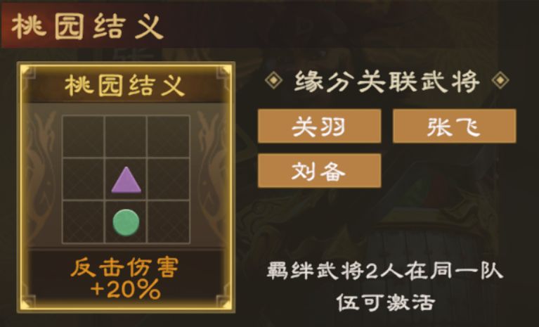 两者同时拥有桃园结义的羁绊,在同一队伍时可触发阵型加成。