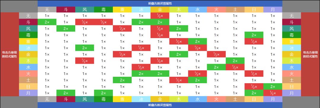 女娲测试当前版本的属性克制图