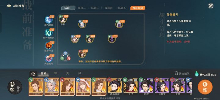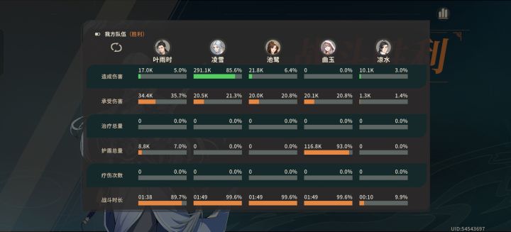 关键就是第一个技能霜天封雪,你们带就是,正好可以丢中两个boss,然后你们就会发现破盾效率极高,具体操作就是先打黑,不停给凌雪套加速,盾不要停跳舞不要停,你们看霜天封雪技能就懂了,带这个打黑白很简单,控制白嫖内伤和两连击。丢中两个卡好位置剩下的操作就是循环了。