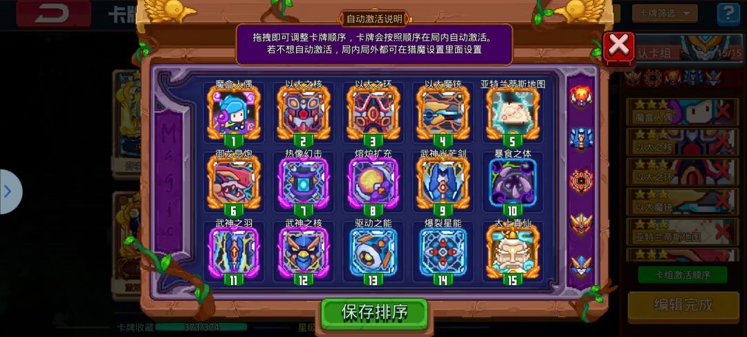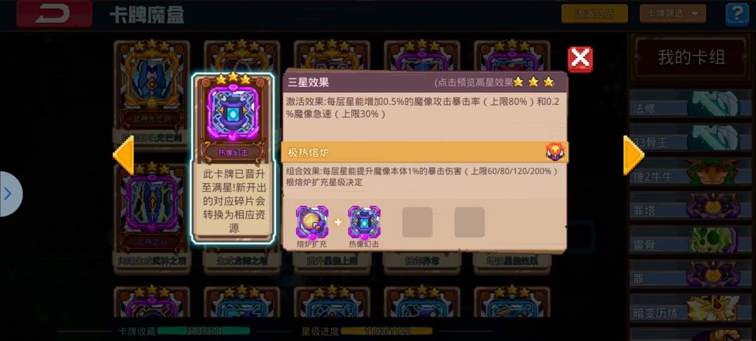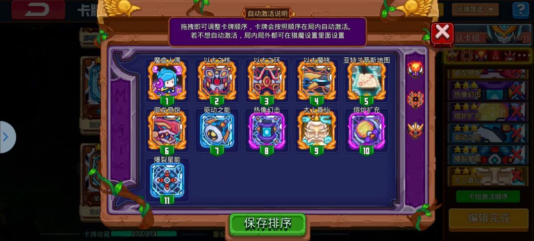 根据自己手感来,喜欢暴力就塞输出卡(力量的代价,深渊轰鸣,黑洞等),怕死就塞保命卡(琉璃金身,寒冰魔神,圣光恩典,也许也可以多带一套机甲?)要多带一套机甲就把第二套机甲的三卡往前调一个在熔炉后面。