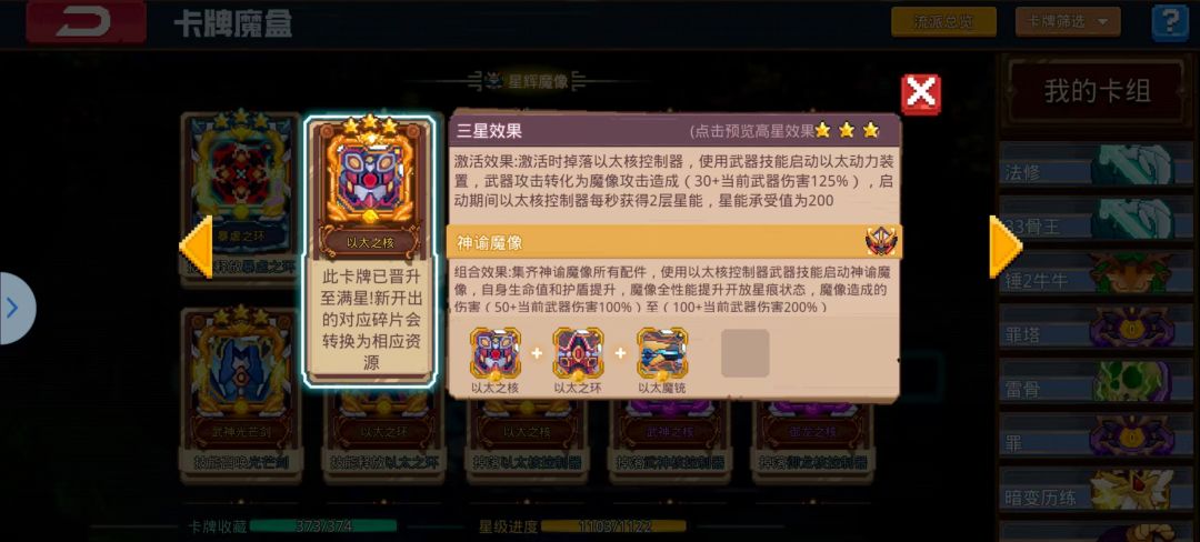注意:15卡的太上并不是让你15卡点,如果图三是帝国的话手动去点一下太上,不然容易被泥头车撞死(帝国带冲锋的怪都可以给你挂流血,机甲会给自己挂易伤容易被秒。带上太上之后你开太上然后再原地不动一般怪就冲不进来了,但是你动了他就会追踪你),另外俩张机甲蓝色卡爆裂星能纯加伤,驱动之能可以加移速还可以跟以太套的卡组合。