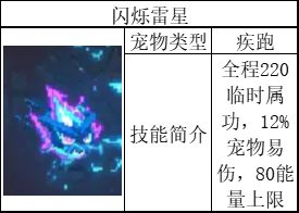 新宠物定位为疾跑,第一次开启疾跑后,只要能量不减少为0,则视为该宠物效果一直存在,效果存在期间,给勇者自身提供220的临时属功,80能量上限以及最大20%能量消耗缩减,并对效果存在期间攻击到的怪物施加12%宠物易伤。