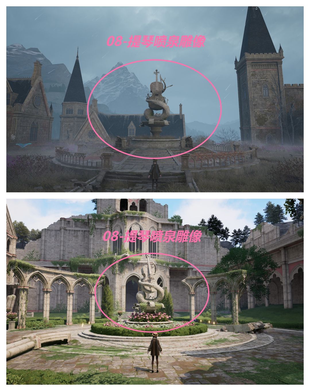 08-提琴喷泉雕像(传送锚点菲洛米亚女王行宫遗迹地下入口-激活点行宫旧苑/传送锚点菲洛米亚女王行宫遗迹地前庭进入庭院中央,雕像很大缩小倍镜直至出现完整提示框后拍摄)