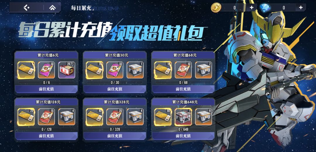 活动期间,每天充值达到一定额度的指挥官可于此页面领取超值礼包一份。