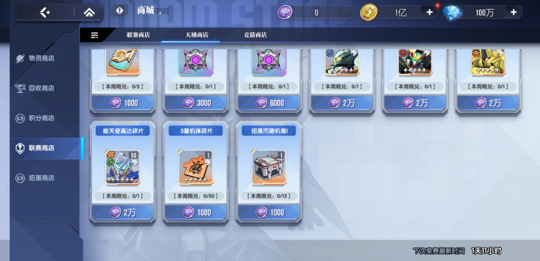 为了提高【荣耀天梯】玩法的日常收益,9月10日维护后,指挥官们每周可以在天梯商店中额外购买到【机师突破徽章】以及【扭蛋币随机箱】。