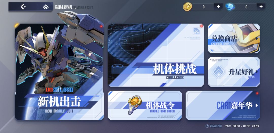 2.新机体【00强化模组】将于9月11日【限时新机】活动中登场