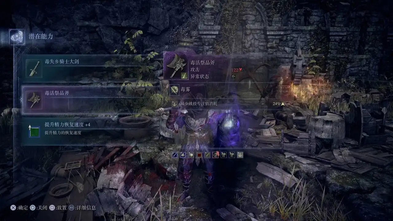 地图上也有一些商人,能用卢恩买一次性道具、血瓶和精力瓶。此外,还有一些地点可以为你消除身上的DEBUFF,还有提升相应的攻击属性的交互点,强化武器等。