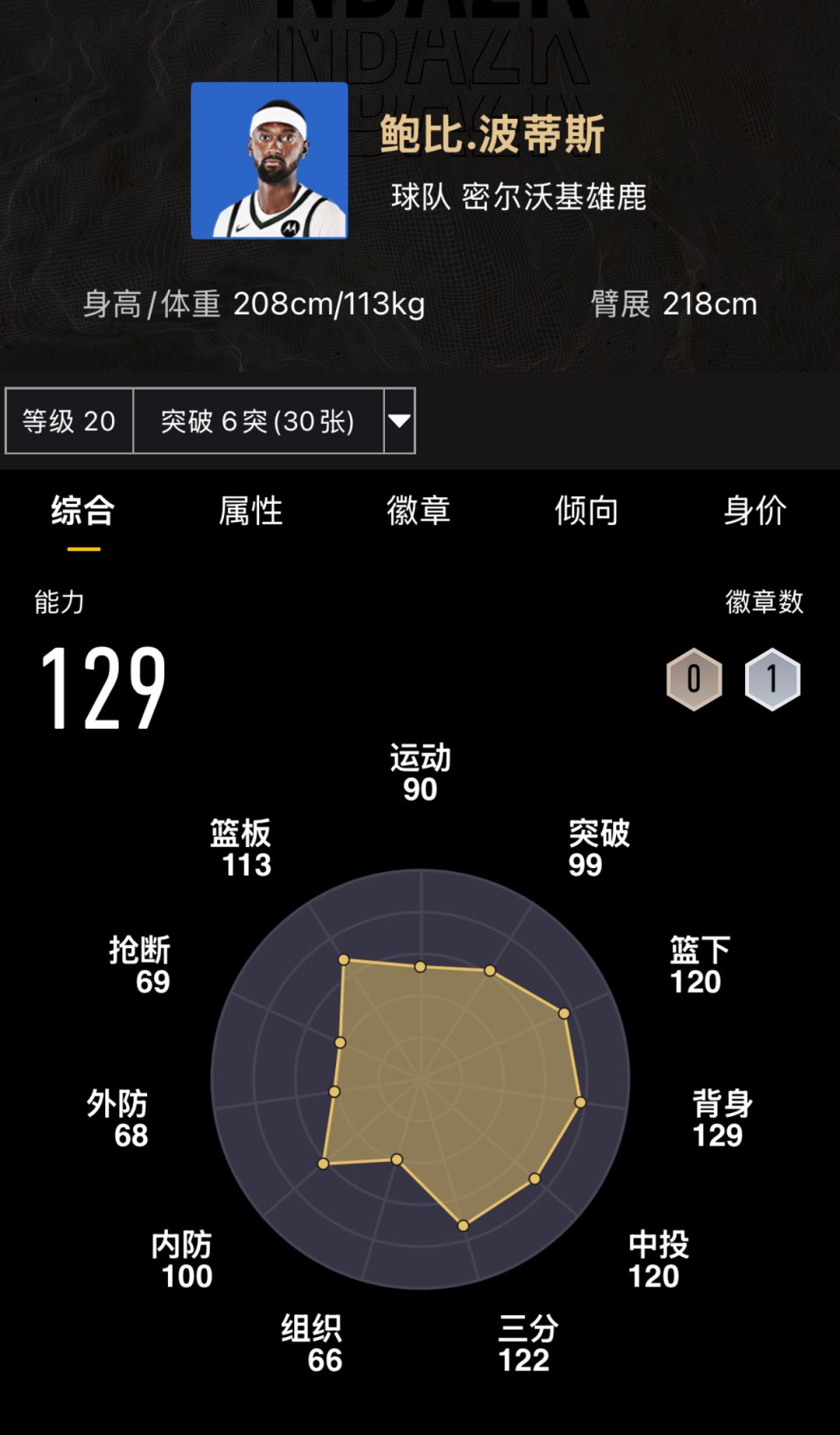 7.波蒂斯,双投可以投,🈶银卡位,算是比较看的过眼的空间C,但是三分球准度可能有点差。【鲍比.波蒂斯(129↓124)进攻稳定性157↓122】