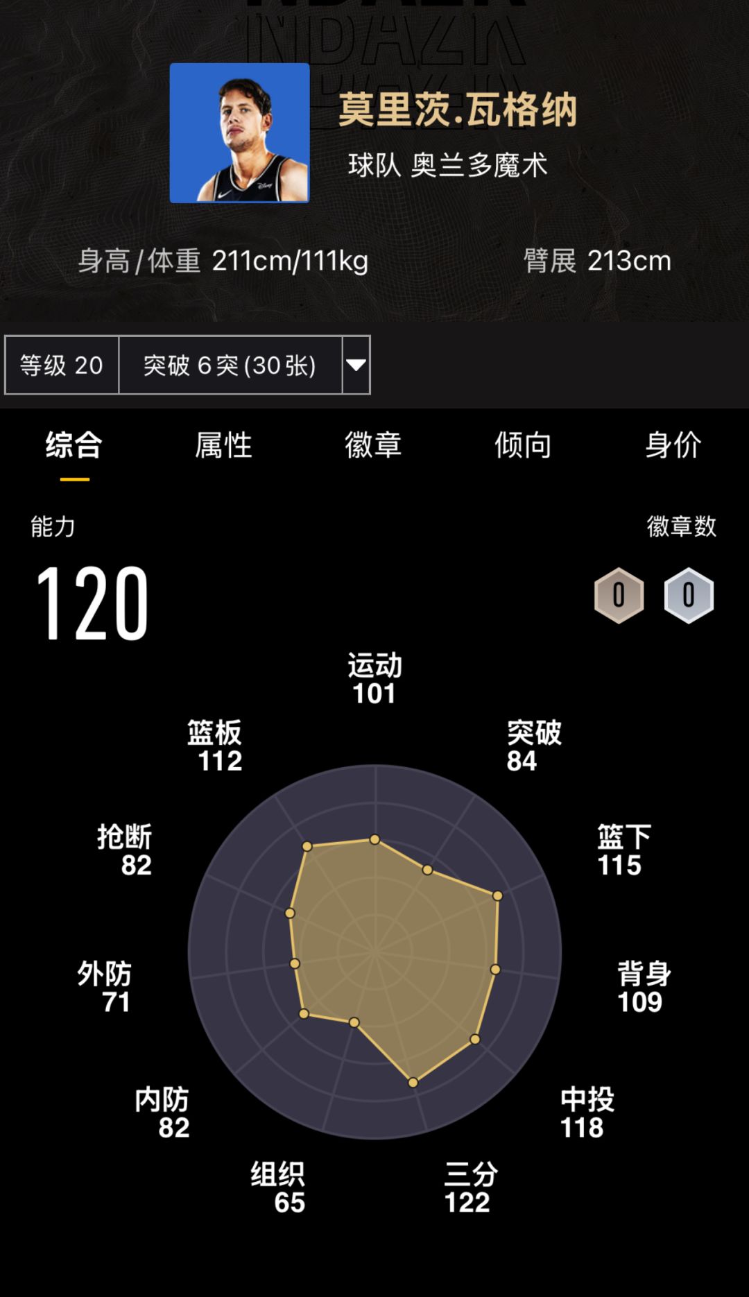4.大瓦格纳,模型较大,三分准度在线,但是防守差。【莫里茨.瓦格纳(120↓112)投篮智商133↓82 进攻稳定性133↓122体力133↓118 造成对手犯规64↓47接球114↓101 控球50↓47】