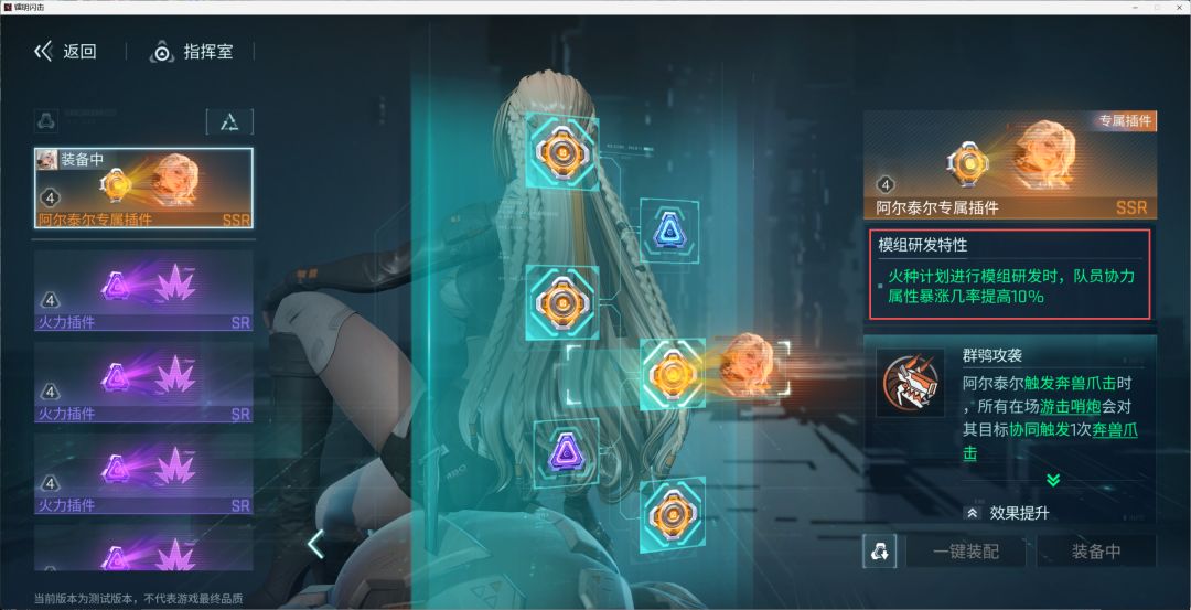 SSR专属插件,专为阿尔泰尔队员设计的【游击哨炮】加成效果,这就是专属插件的“权威”嘛!