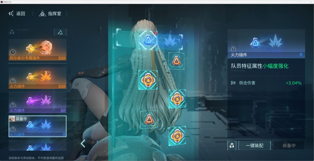 我们以阿尔泰尔队员1号位插件举例,各位指挥官就能直观了解,各插件效果对比啦~