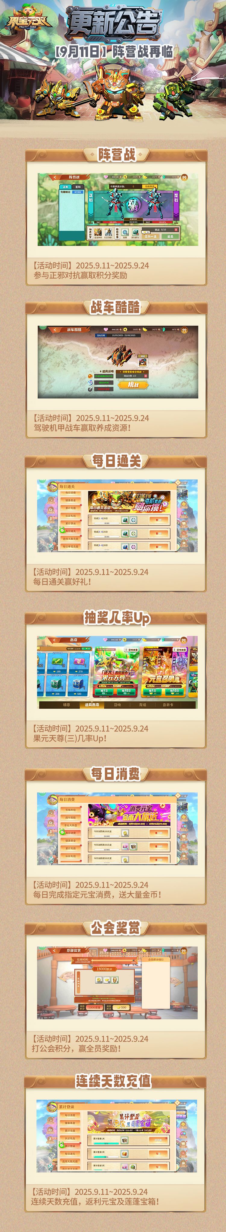 《果宝无双》将于9月11日(星期四) 下午 14:00 至 16:00进行停服维护更新,请果宝们注意维护时间!
