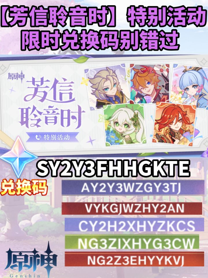 【原神】芳信聆音活动兑换码一览,原神新版本活动 原神空月之歌 原神挪德卡莱 原神6.0版本