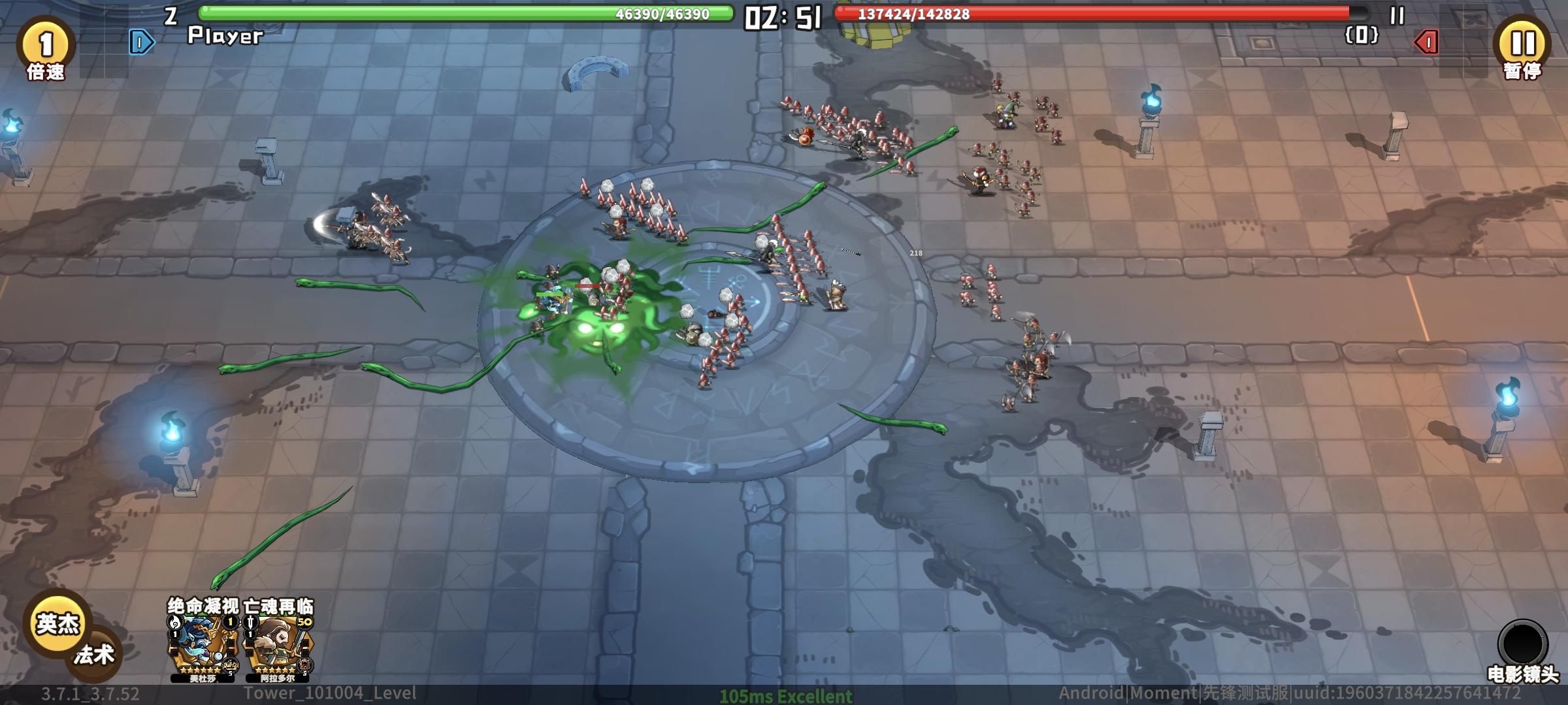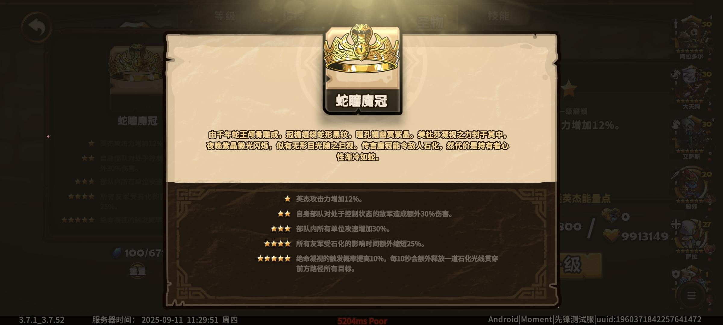 t0.5控制类法师,普攻概率使目标范围石化,自身阵亡后全屏石化包括队友,4圣加上被动能让友方石化缩短75%也就是7.5秒,5圣后石化频率增加,新增每10秒一道石化光线。