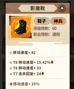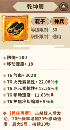 鞋子穿乾坤履50玉,影魔鞋90玉,纠结就影魔鞋,影魔鞋移速稳定并且好强化,魔出移速最好,这个即使转了流派也能穿