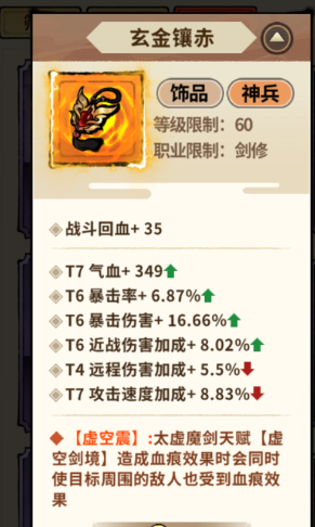 饰品穿玄金镶赤,60玉上下,这个冰火流派通用,可以弄好一点,依旧是主要强在暴击上,魔化出暴击最好,以上项链戒指饰品,最好魔出两个暴击,这样不算天赋有6070暴击