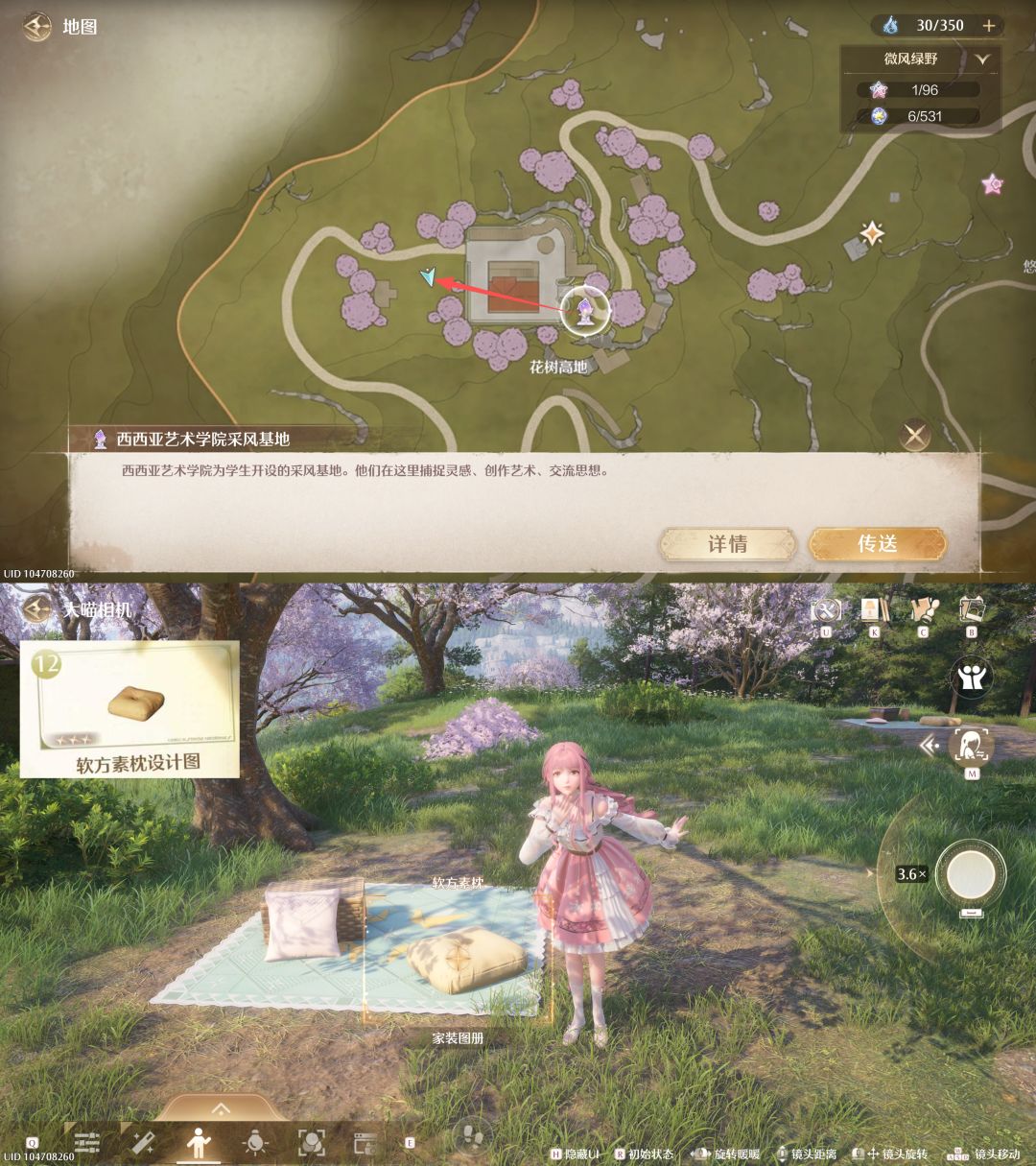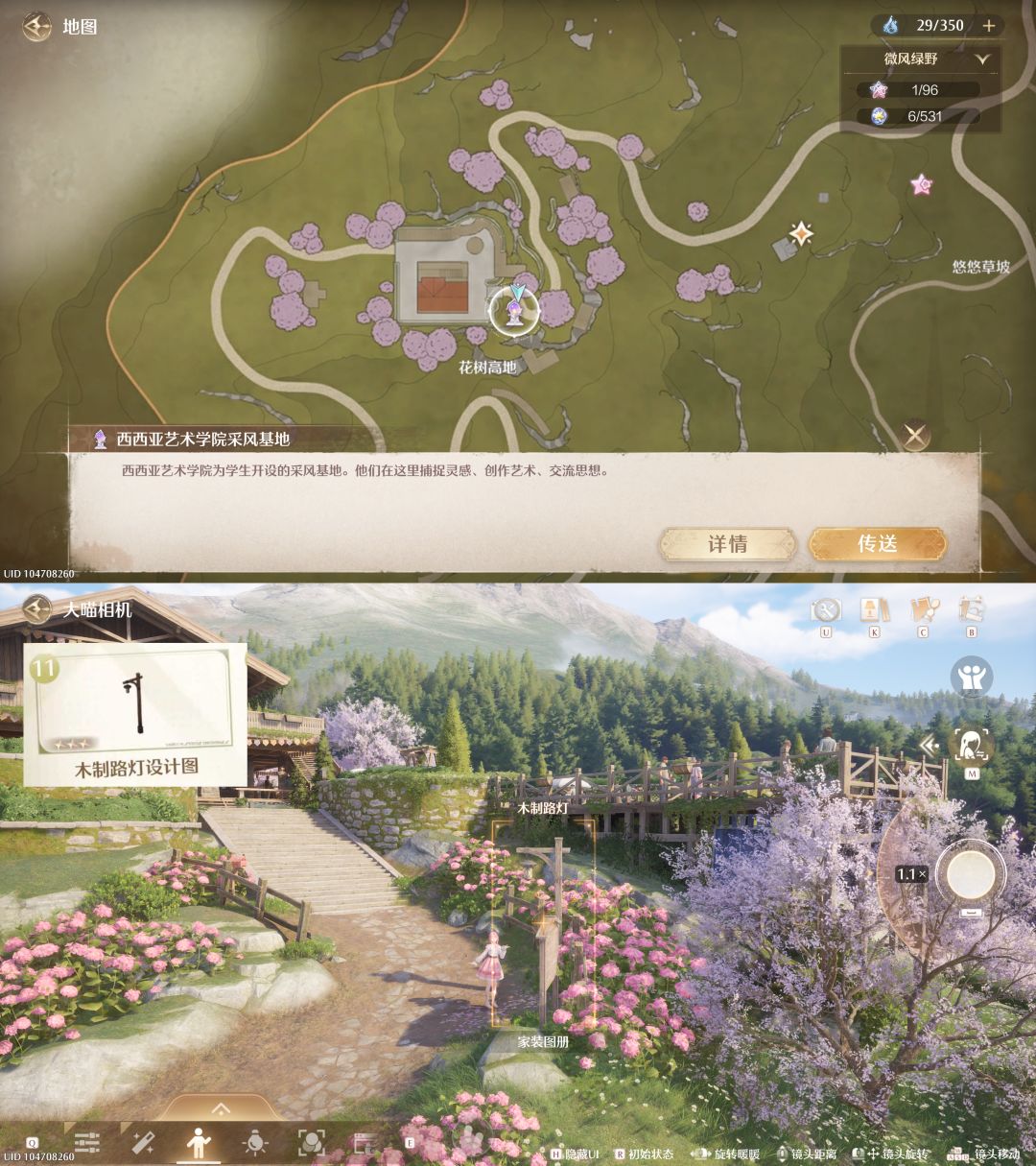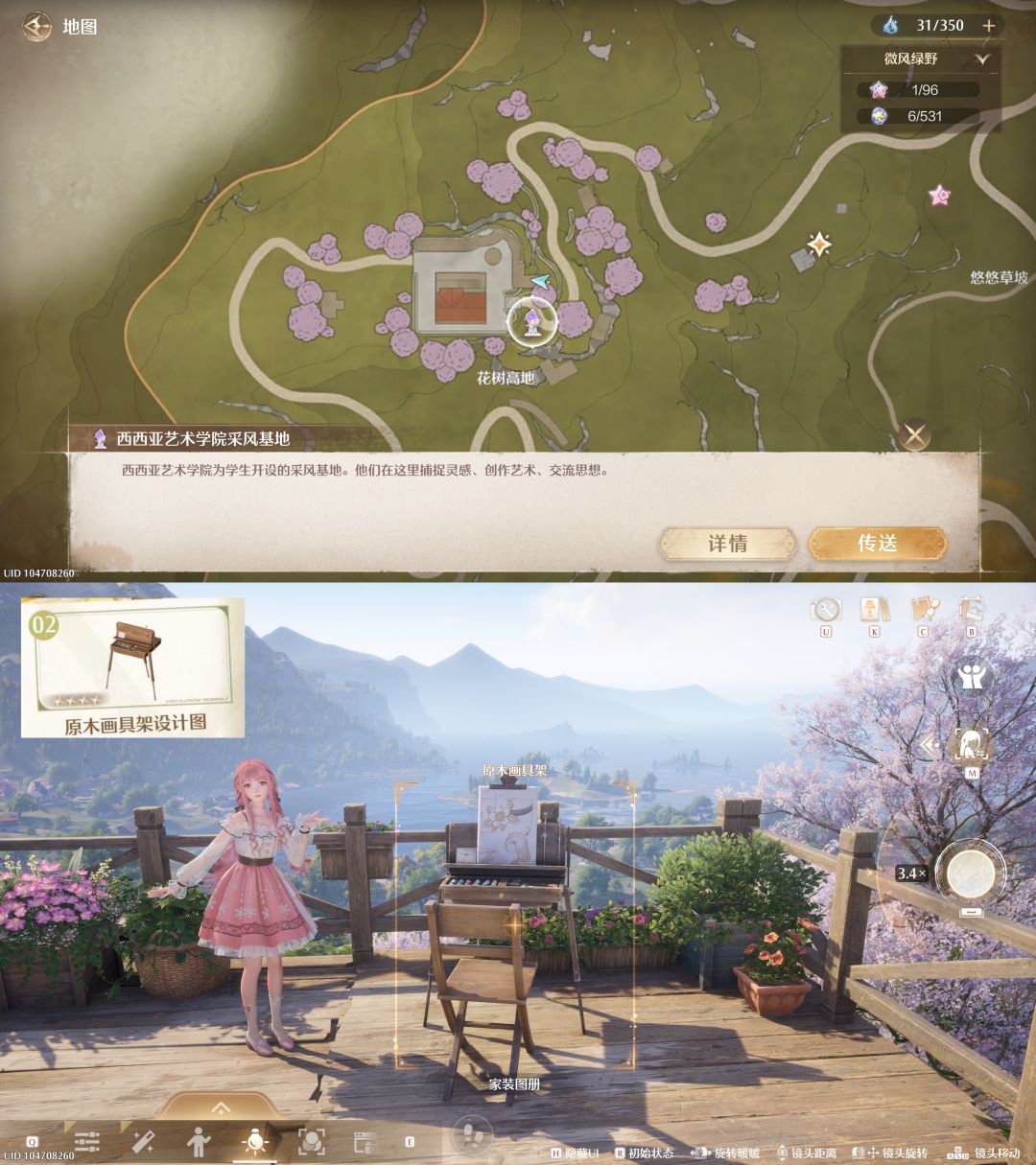 2️⃣原木画具架(P7):在【西西亚艺术学院采风基地】锚点北方;
