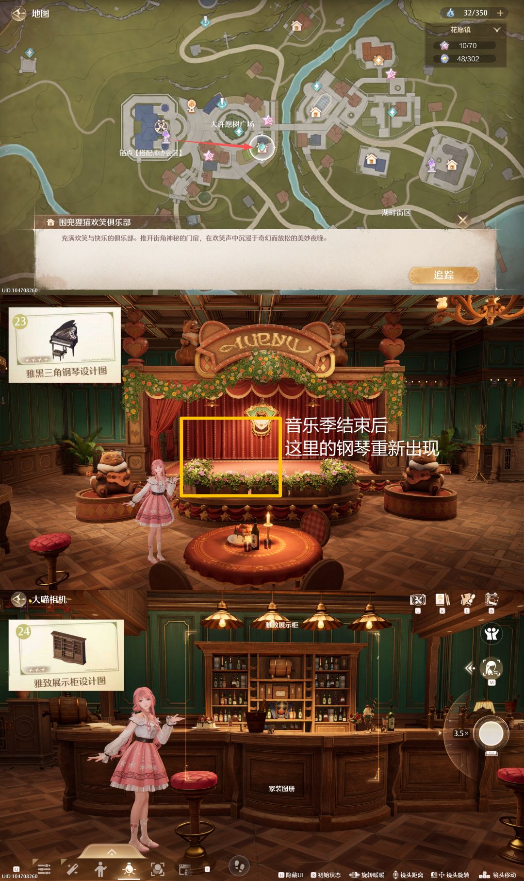 2️⃣3️⃣雅黑三角钢琴(P4):与24号家具一起,在【围兜狸猫欢笑俱乐部】室内舞台处,钢琴在音乐季结束后会出现;